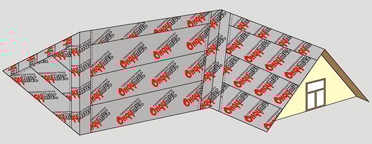 На скатных крышах утепленных мансард Ондутис А100 монтируется с двойным вентиляционным зазором между плёнкой и кровлей и между плёнкой и утеплителем минимум 5 см. Угол наклона ската не менее 40°.